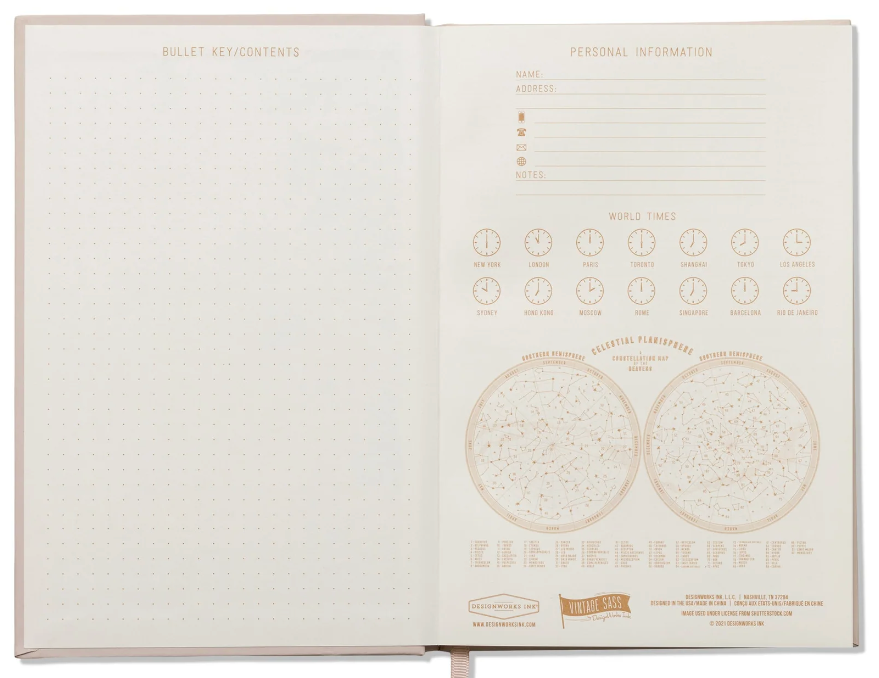 High-quality notebook features a soft touch, hard cover, a ribbon marker and handy references: World map, time zones, equivalents, multiplication table, holiday overview, important dates and space for personal information.